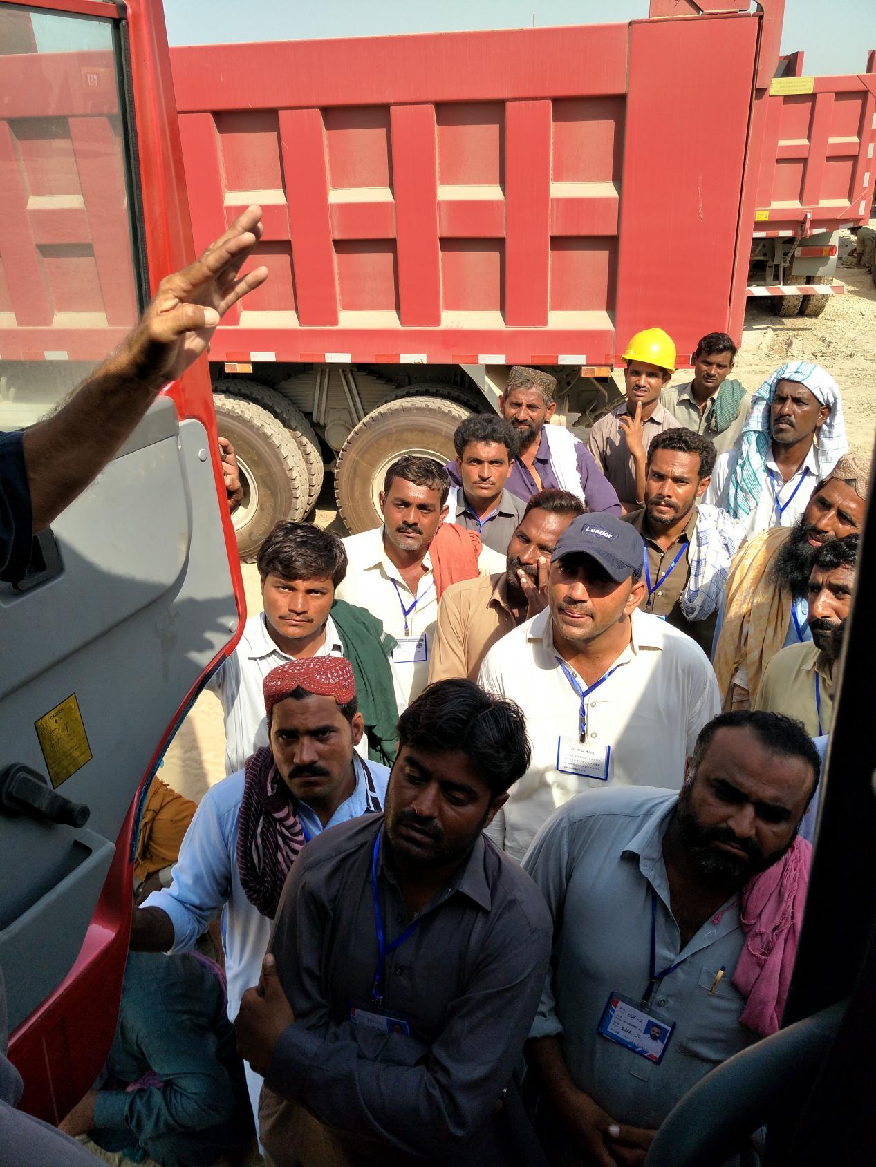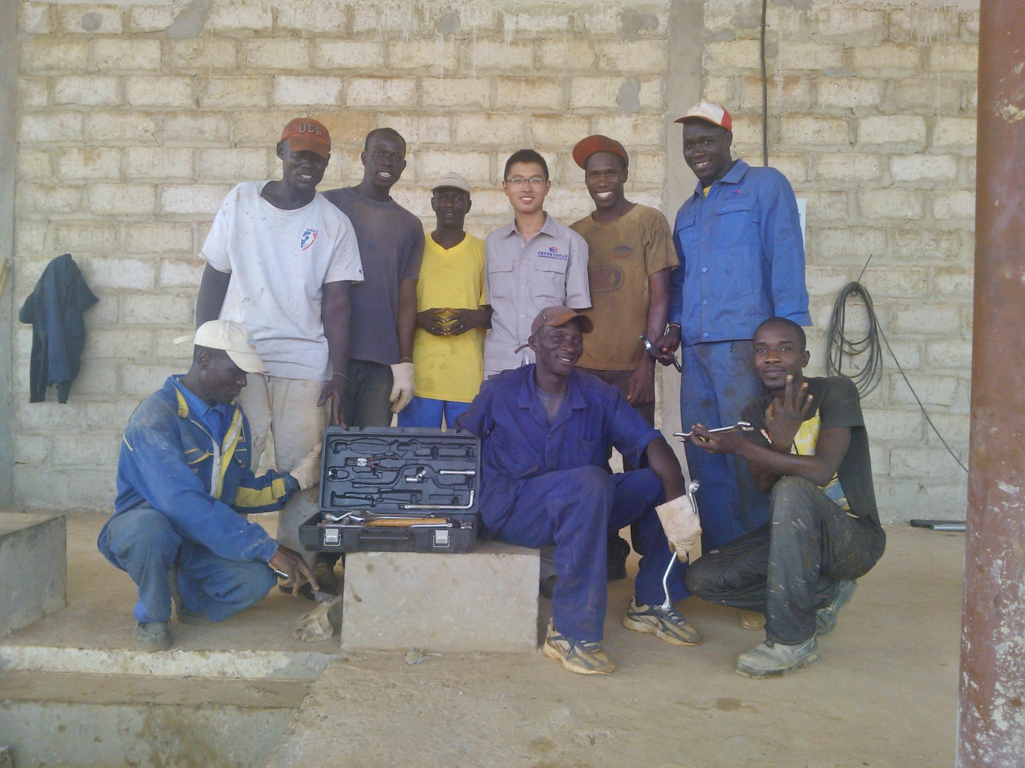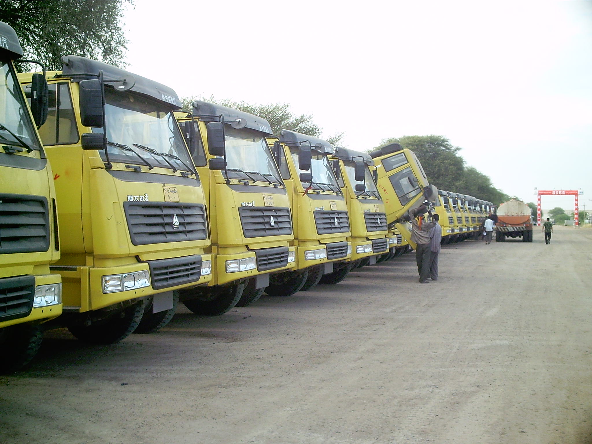 蘇丹-羅塞雷斯大壩加高項目,2009年 4月27日喀土穆當?shù)貢r間中午12點,中國水利水電建設(shè)集團公司和中國水利電力對外公司組成的CCMD聯(lián)營體與蘇丹大壩運行管理局(DIU)在象征著中蘇友誼的“友誼廳”舉行了羅塞雷斯(Roseires)大壩加高項目施工合同的簽字儀式。。巴希爾總統(tǒng)、水利灌溉部長奧薩馬、財政部長賈茲、中國駐蘇丹大使李成文等發(fā)表了熱情洋溢的講話。中國水電集團總經(jīng)理范集湘、中國水電對外公司總經(jīng)理陸國俊和蘇丹水利灌溉部部長兼DIU局長奧薩馬分別代表各方在合同書上簽字。購買我司產(chǎn)品共計129輛專用車輛:20T重汽斯太爾自卸車110輛、20立方灑水車10輛(具有簡單的消防功能)、吸糞車4輛、5T載貨車。下面是售后服務(wù)人員與當?shù)鼐S修技術(shù)人員在一起。