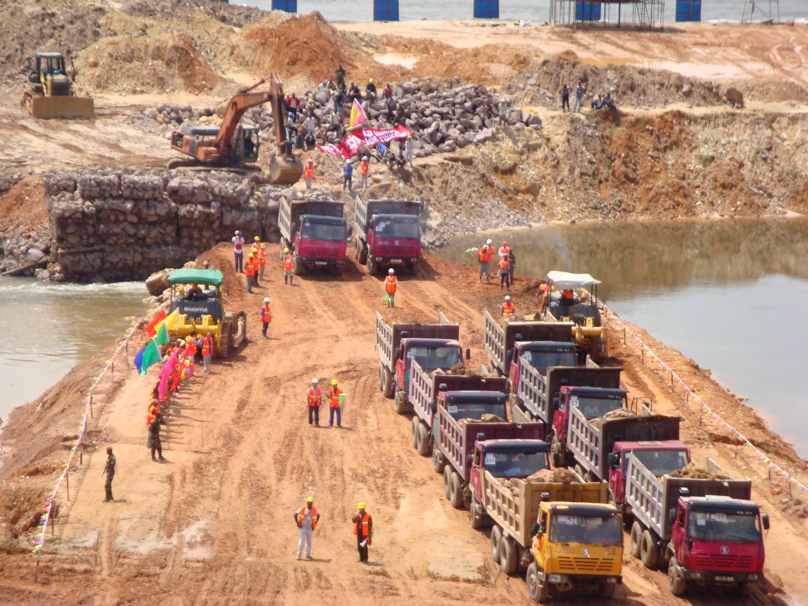 加蓬-布巴哈水電站項目,布巴哈電站裝機規(guī)模為160Mw,合同金額約為:4億美元,工程開工時間為2008年11月15日,2013年4月25日完工,總工期約54個月,2009年4月我公司與中國水電集團簽訂了1780萬元的車輛供貨合同,主要有大力神自卸車、灑水車、加油車、混凝土攪拌運輸車等共計77輛,出色的品質(zhì)及良好的售后服務(wù)深受用戶好評。我公司生產(chǎn)的大力神20T自卸車及重汽豪濼自卸車截止2010年底主要完成工程量(擋水大壩、取水口、引水道 、調(diào)壓井 、地面明廠房出渣):土方明挖403599.7m3,石方明挖212390.6m3,石方洞挖95019.4m3,土石方填筑169476.2m3,礫石料填筑51032.1m3。奧果韋河大壩截流現(xiàn)場我公司生產(chǎn)的25T自卸車發(fā)揮著巨大的作用。
