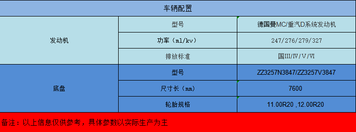 重汽發(fā)動機,十檔變速箱,7T前橋,16T后橋。